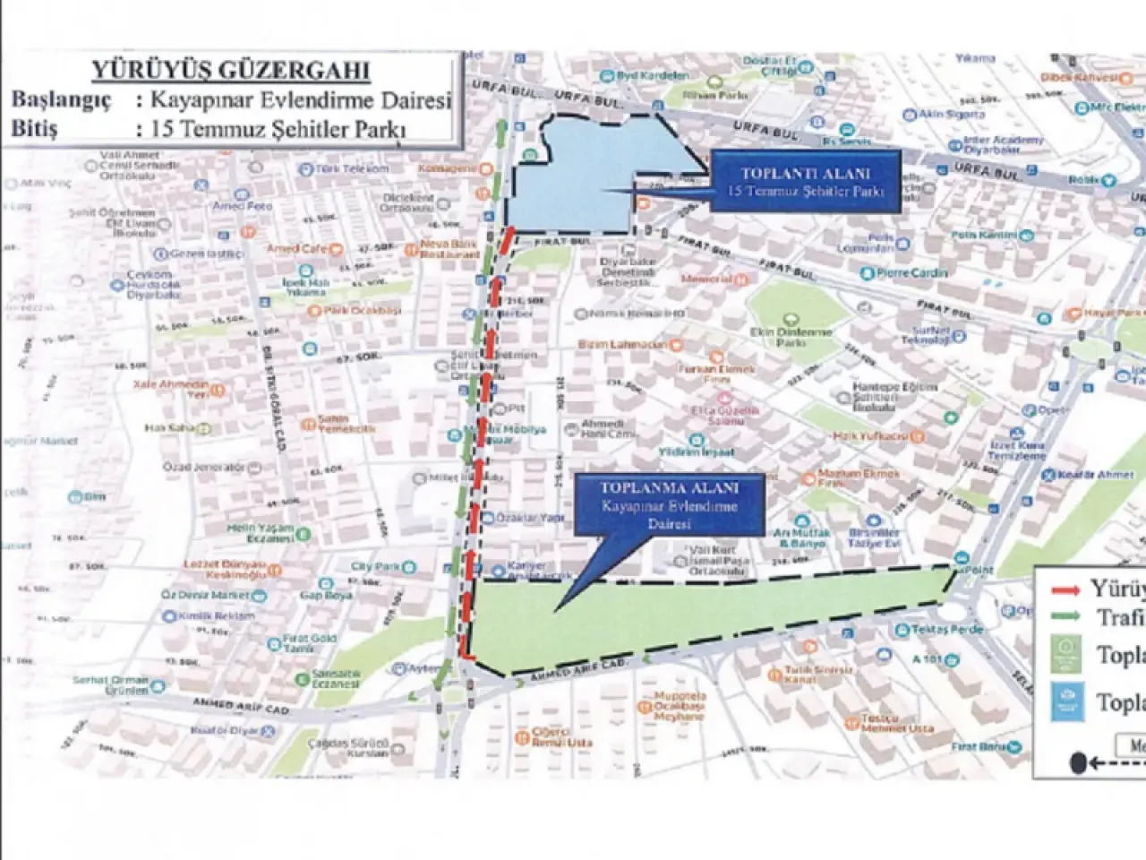 Kayapınar ilçesinde ise iki ayrı yürüyüş hattı belirlendi.